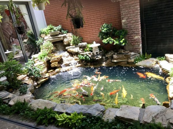 Trong trường hợp muốn đặt hồ cá Koi trong nhà, việc lựa chọn một không gian rộng rãi, có đủ ánh sáng và kiểm soát được nhiệt độ là quan trọng. Hệ thống lọc nước và quạt thông gió cần được cân nhắc để đảm bảo sự tươi mát và sạch sẽ cho hồ cá trong môi trường kín.